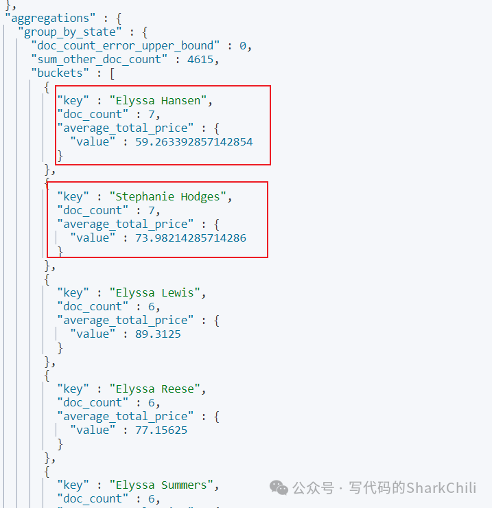 es同样是支持聚合操作,例如我们希望看到每个customer_full_name