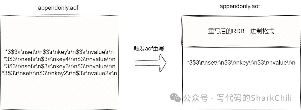 )写到新的aof文件中。完成上述操作后我们就会得到一个前半部分是 RDB