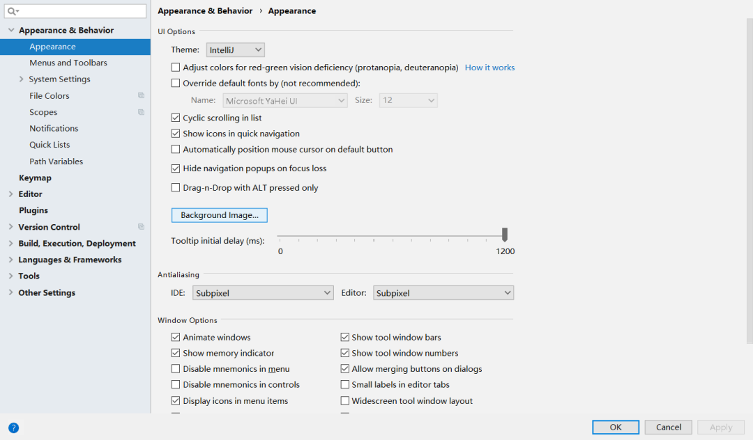 在开发过程中可能需要放大或者缩小界面,需要选择File | Settings | Editor | General