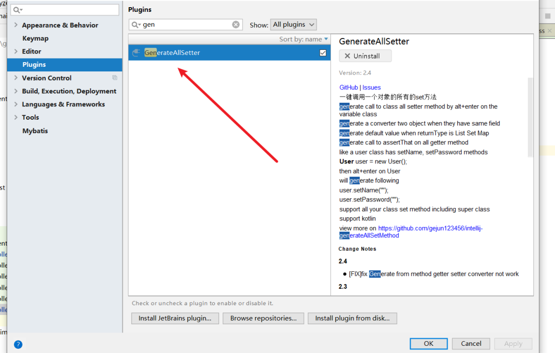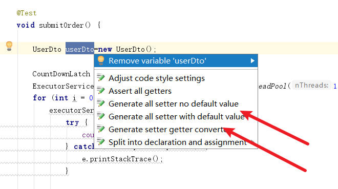 有时候我们在开发中会遇到一个对象需要set多个值,我们就可以安装generateAllSetter