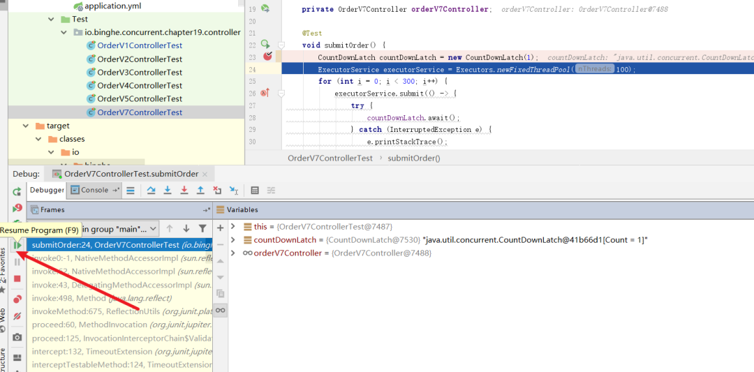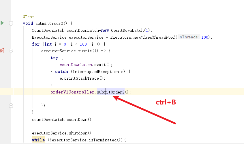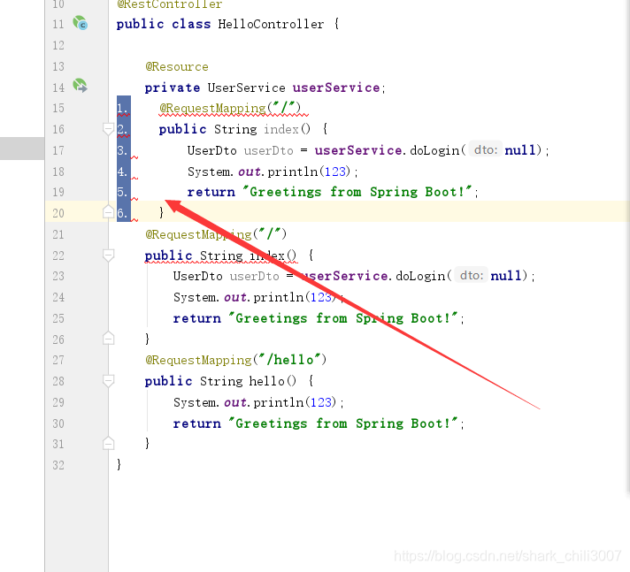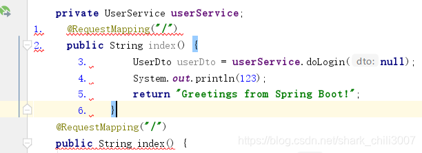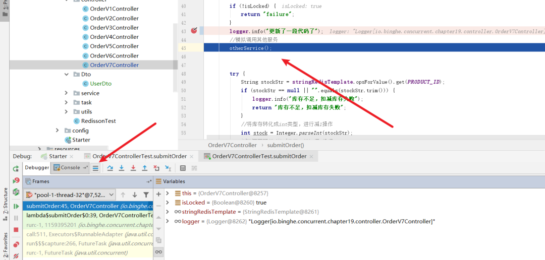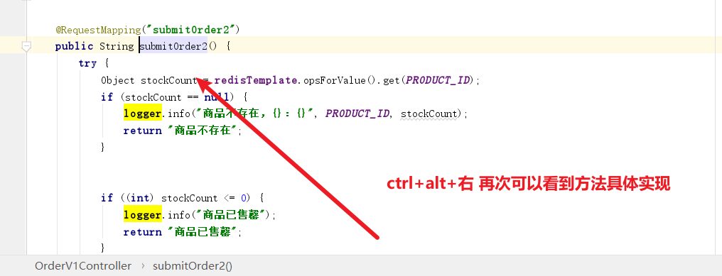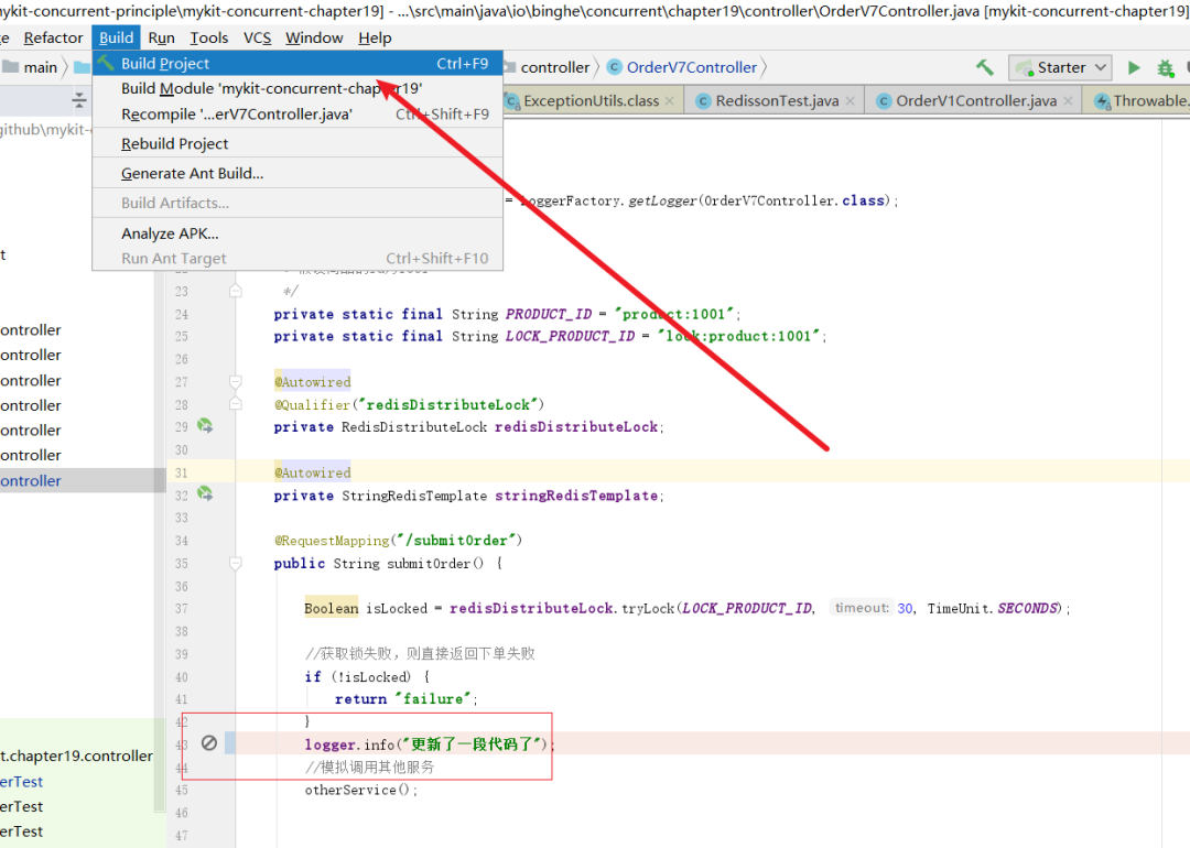 有时候我们希望调试过程中已经知道了bug所在,希望代码不在继续执行去操作资源,例如下面这段代码就会操作redis数据,有些读者可能会用强制停止应用的方式结束,某些情况下这种方式还是会操作资源