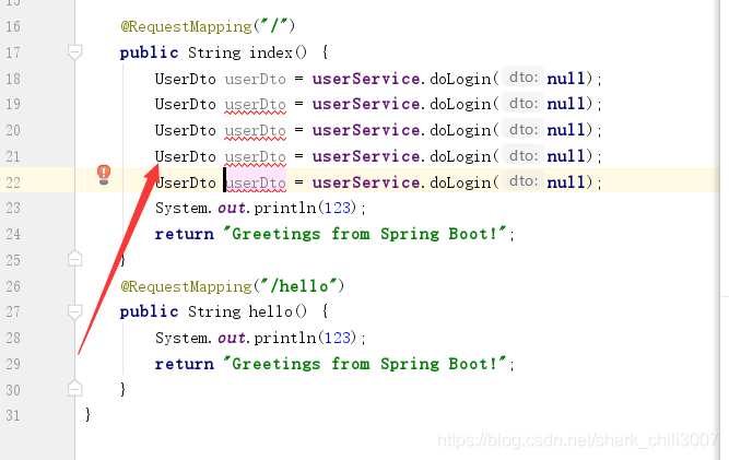 常规cv代码,不管任何位置,IDEA都会自动格式化。 如下情况,当你查阅网上一些代码时,可能会复制到如下代码