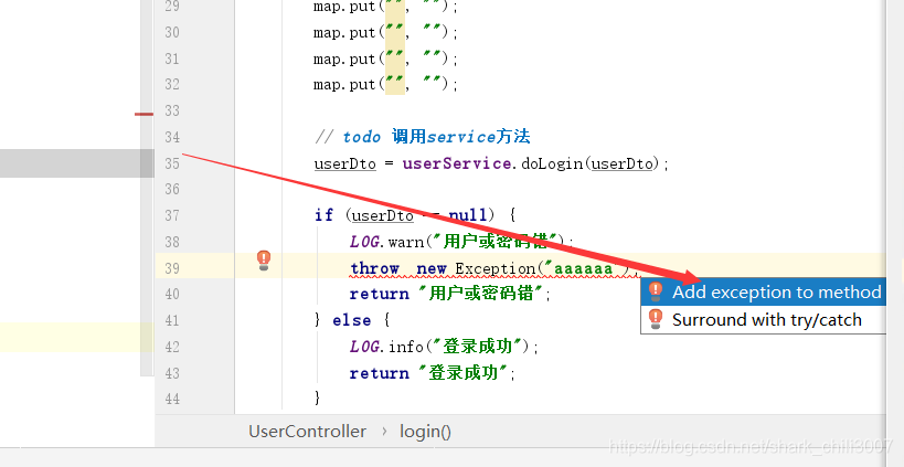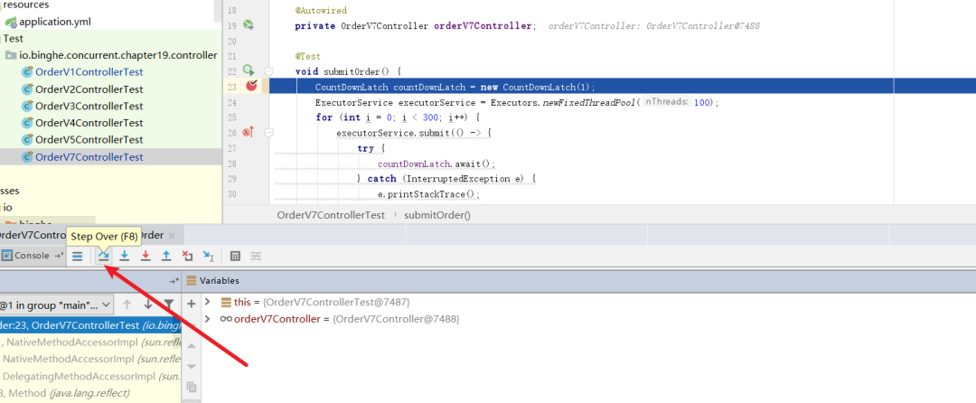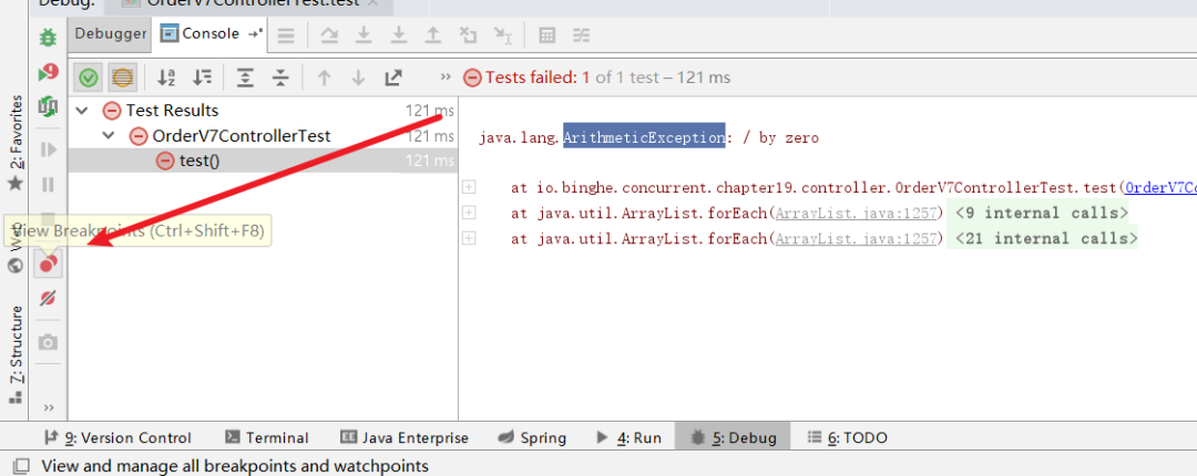 在方法上插入断点,直接按下F9,方法执行结束后就会在return语句中停下,方便我们调试整个代码