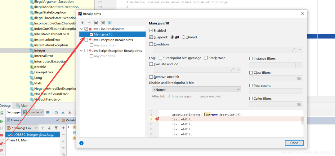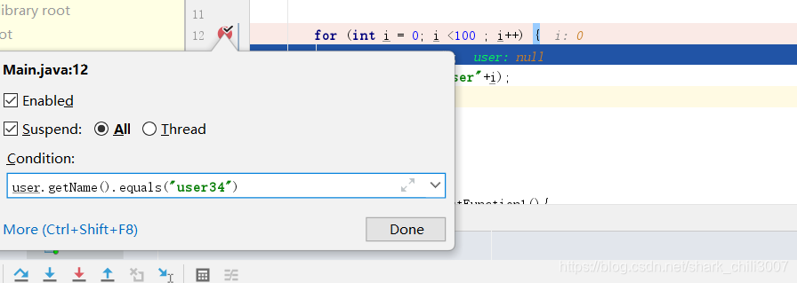 我们希望debug时可以看到当前变量的值,就可以使用alt+f8