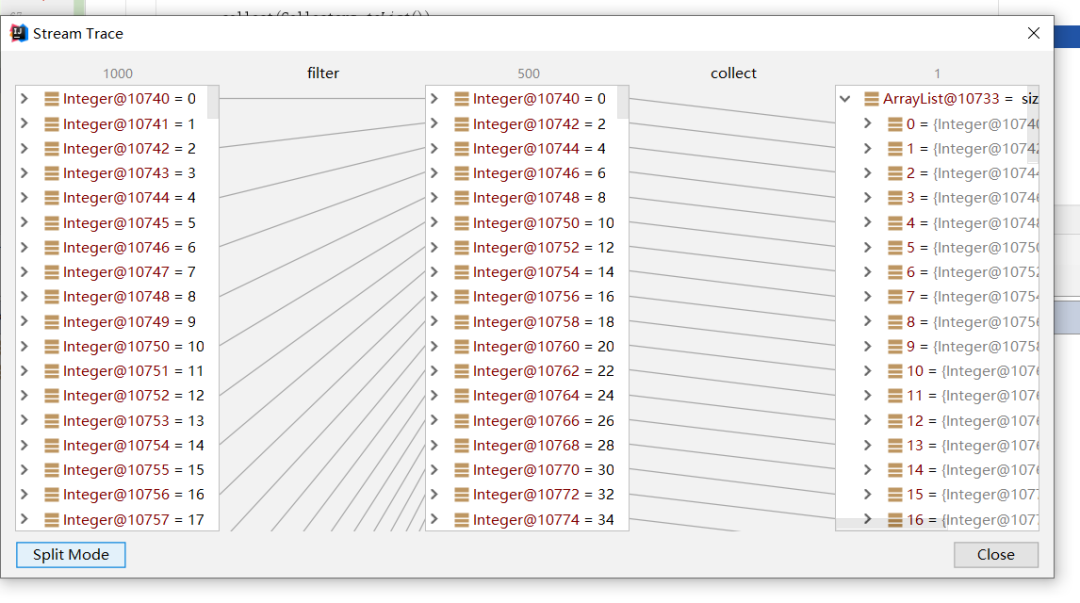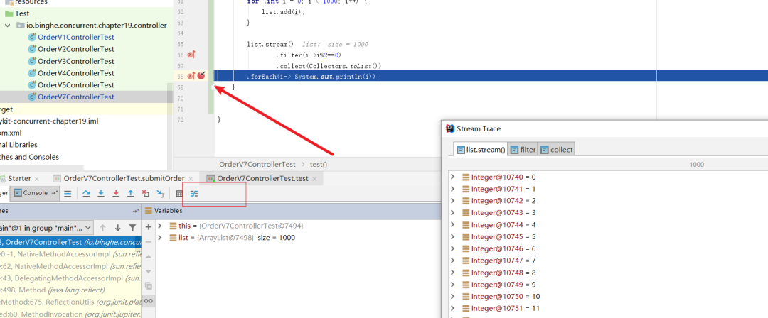 在流终端处插上一个普通断点,点击图中所示按钮即可按需查看流的变化了