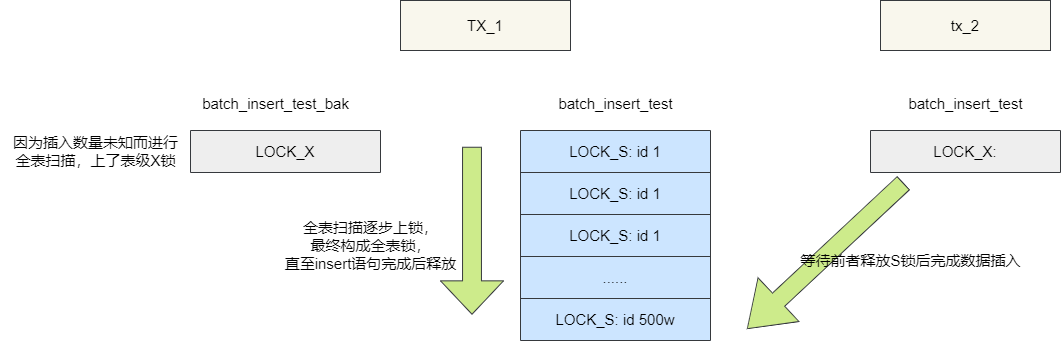 语句也因为对于插入数量未知而上全表锁,进而长期持有auto-inc