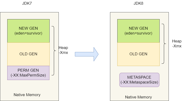 「JDK7」则是基于原有的内存结构的基础上将部分数据进行转移: