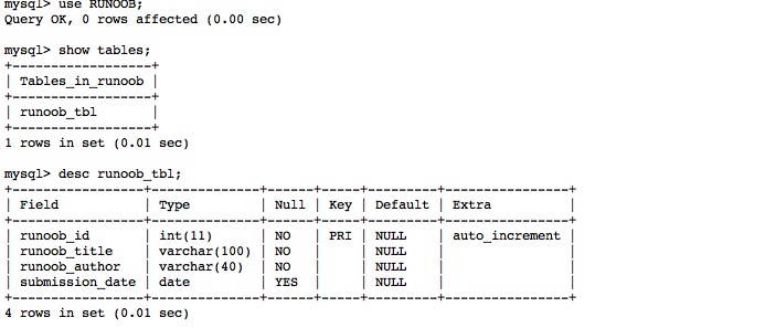 "runoob_author VARCHAR(40) NOT NULL, ".