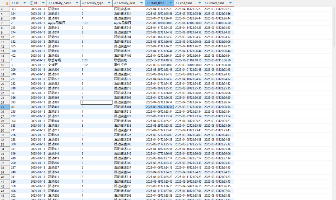 query = "select id, activity_name, activity_type, activity_desc, start_time, end_time, create_time from gmall.activity_info"