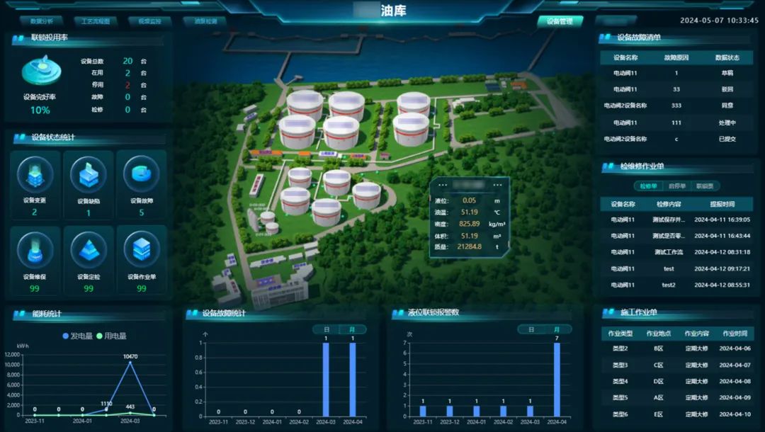 以流程为导向,整合自动化与信息化技术,统一管理油库业务数据,规范作业流程,推进无纸化办公。通过数字化设备管理模块,实现设备状态实时监控与维修历史全生命周期跟踪。
