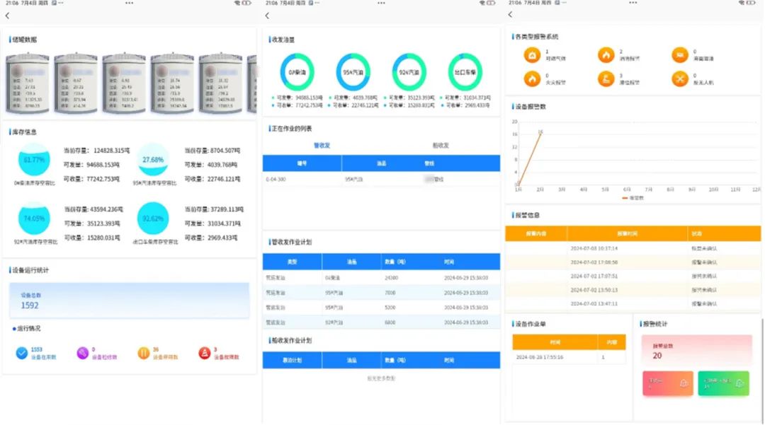 构建全局监控平台,覆盖作业流程、资源状态、生产数据及安防报警等环节,支持生产报表自动生成、收发油计量统计、报警数据可视化分析等功能。通过省、库级数字看板,直观展示运营动态,提升预警响应效率。
