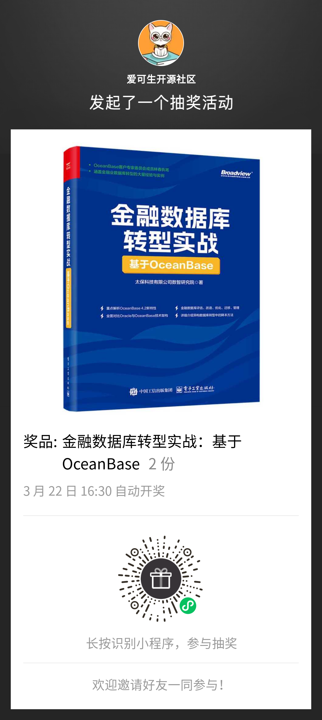 关注爱可生开源社区公众号的用户均可参加; 用户可扫描下方活动程序码,参与抽奖;