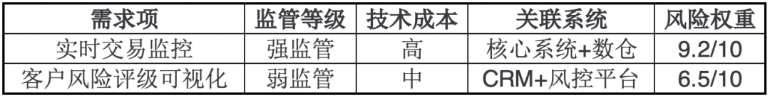 必问清单: ◇ 该需求对应的具体监管条文是? ◇ 现有手工处理流程的监管扣分点? ◇ 哪些数据必须落地本地灾备中心? ◇ 如果监管检查提前1周,系统能否应对?