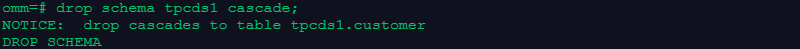 –当schema非空时,如果要删除一个schema及其包含的所有对象,需要使用CASCADE关键字