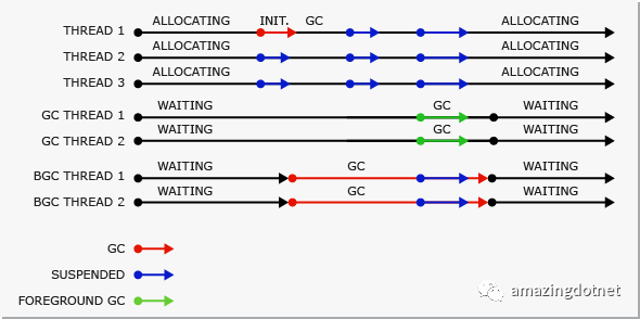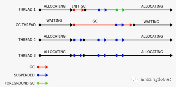 下图显示对服务器上的独立专用线程执行的后台垃圾回收: