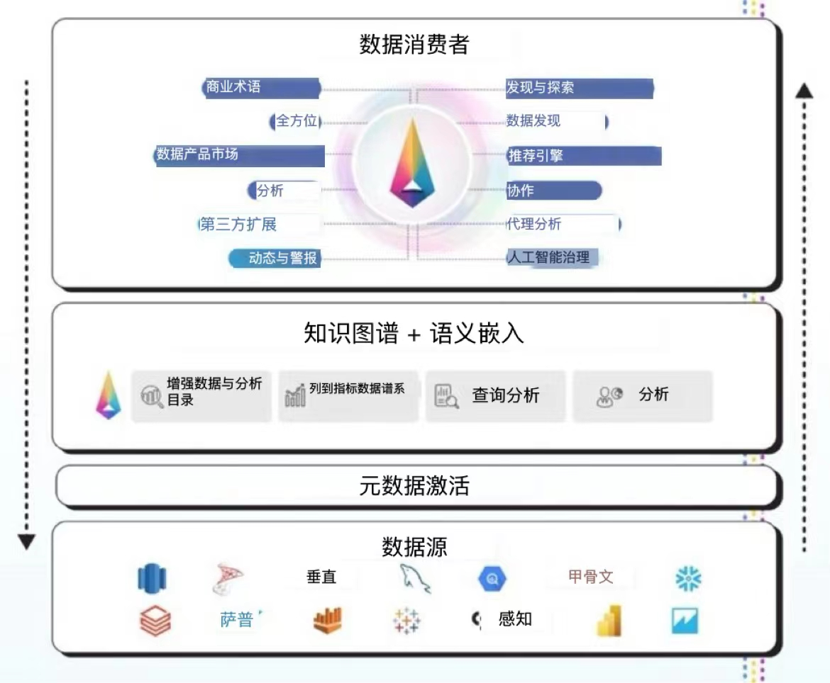 通过标准化连接器接入20+类数据源,包括传统数据库、数据湖表等,支持分钟级元数据感知。