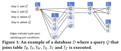 随着互联网和社交网络的快速发展,出现了连续多表连接查询这种新的查询变体。它要求随着数据库以流式方式更新而持续监控查询结果。如下图所示。