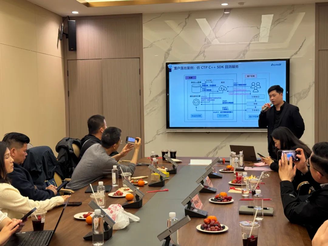 3月20日下午,由东吴证券主办的“极速引擎·数智未来”机构交易解决方案私享会在杭州圆满举行。本次活动聚焦机构交易技术前沿,吸引了多家私募基金管理人参会交流。DolphinDB 作为生态伙伴应邀出席,分享了面向机构交易场景的一体化解决方案。接下来,带大家一起回顾活动的精彩瞬间~首位嘉宾艾科朗克业务总监何永波,分享了公司基于 FPGA 硬件加速的证券低延迟交易解决方案,重点介绍了公司的两大核心产品:行情加速系统 Xele-MD,以及证券交易系统 Xele-Trade。目前其解决方案已在多家券商机构落地应用,系统运行稳定性与成熟度得到验证。未来艾科朗克将持续优化硬件加速技术,致力于提升交易系统的性能与可靠性,为行业提供更高效的交易基础设施。
