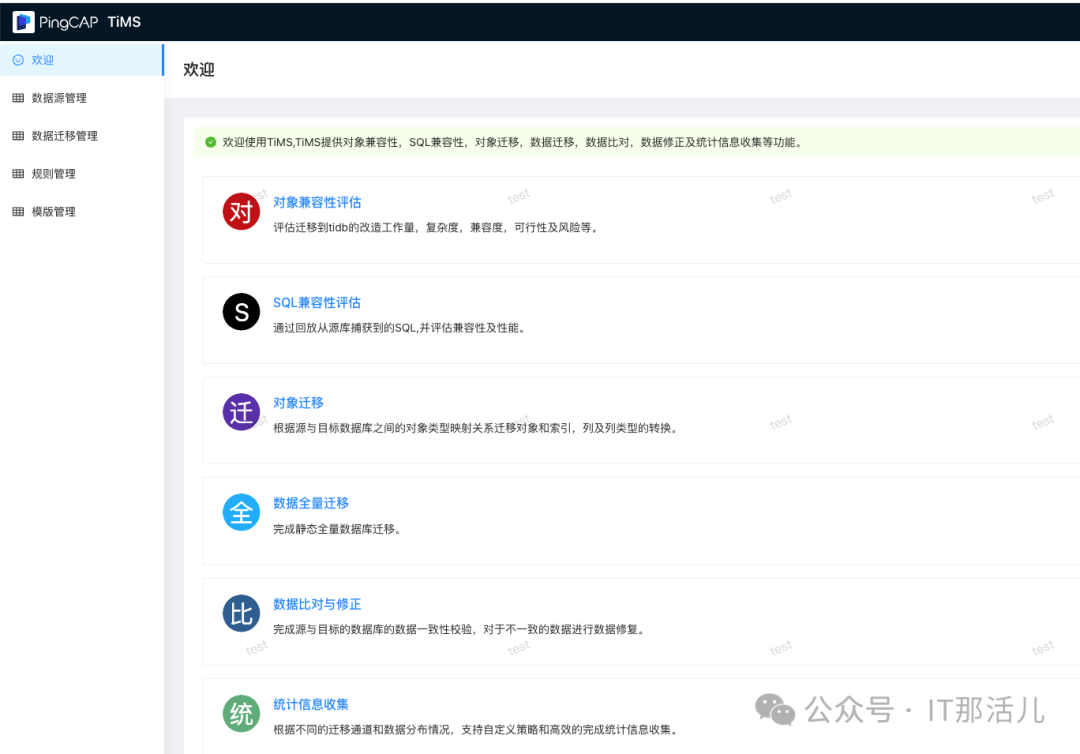2)TiDB数据库用户需要待迁移数据的增删改查、创建、删除权限