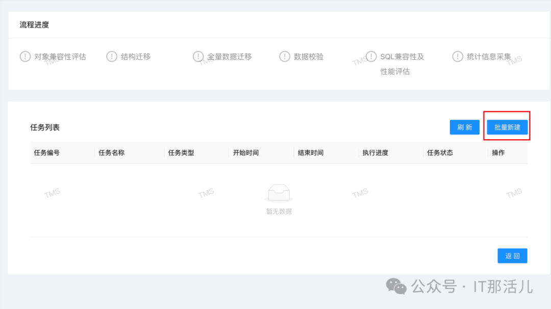 从通道列表进入CSV模式的通道,此时任务列表为空。点击“批量新建”按钮创建任务: