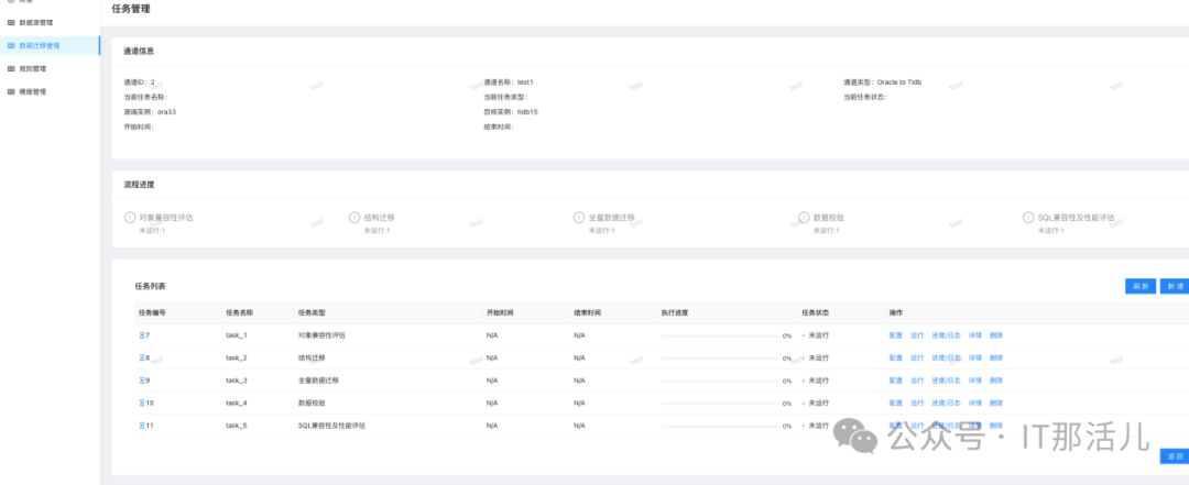 进入新建的迁移通道中,依次执行各个迁移任务: