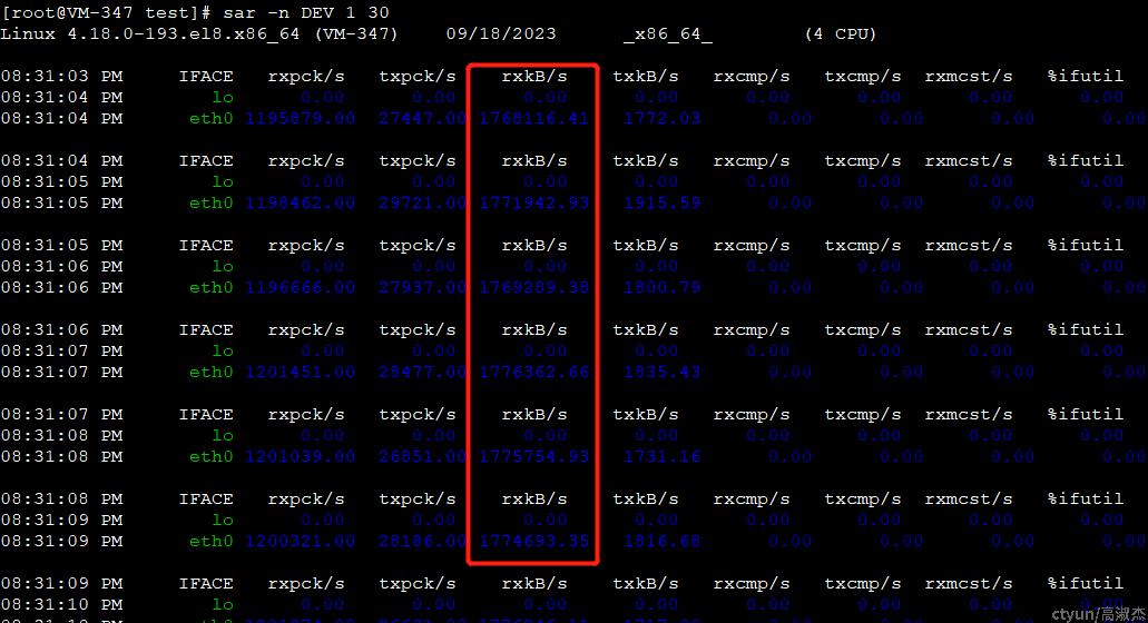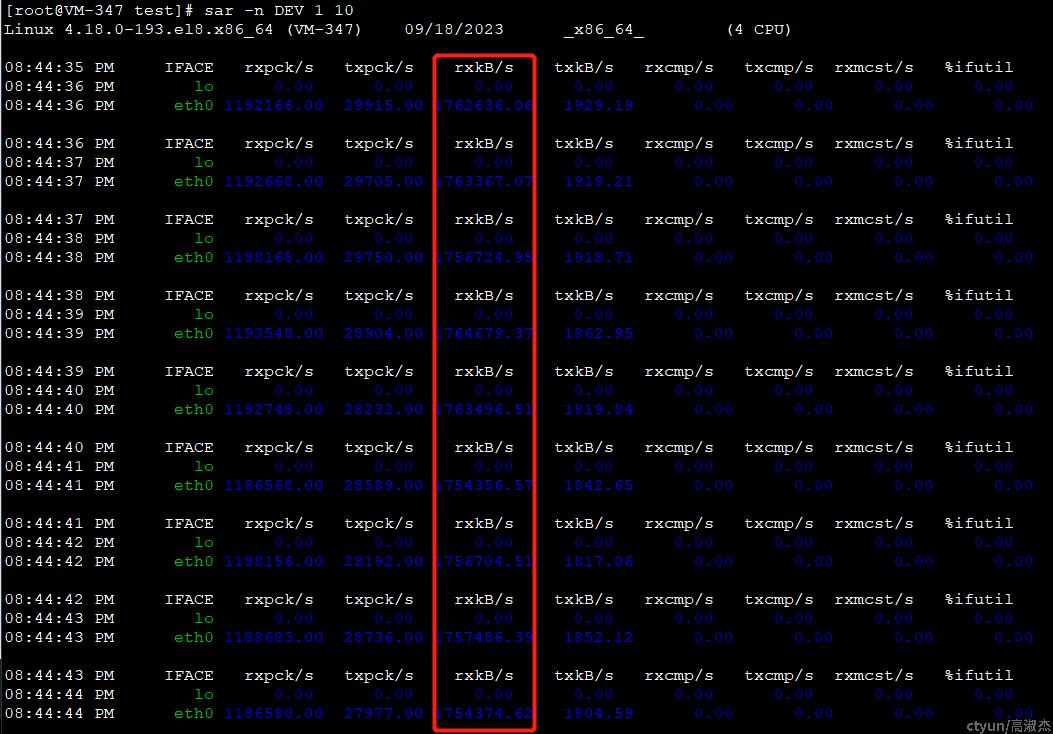 sever端通过执行sar -n DEV 1 获取 rxkB/s,转换为带宽(kbps)=字节数(rxkB/s)*8,即为bps