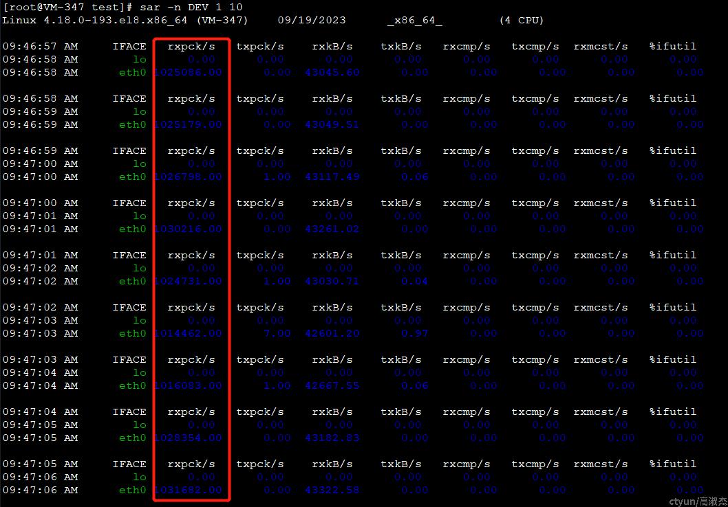 在server端执行sar -n DEV 1 查看rxpck/s 列 即为收包pps