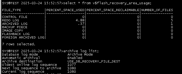 - 配置归档位置到 USE_DB_RECOVERY_FILE_DEST,并设置存储大小