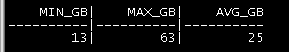 select round(min(sum(blocks*block_size)/1024/1024/1024)) MIN_Gb,round(max(sum(blocks*block_size)/1024/1024/1024)) MAX_Gb,