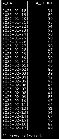 select a_date,a_count from (select to_char(first_time,'YYYY-MM-DD') a_date,count(*) a_count