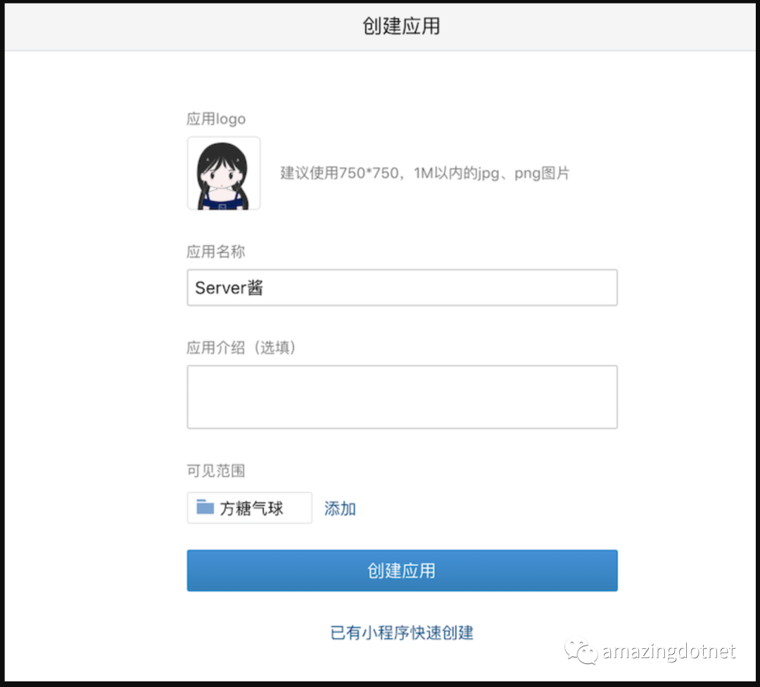 上面的应用 id 和 logo 可以自定义,不必和上面保持一致