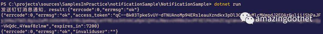 Console.WriteLine($"发送钉钉消息通知,result:{result}");