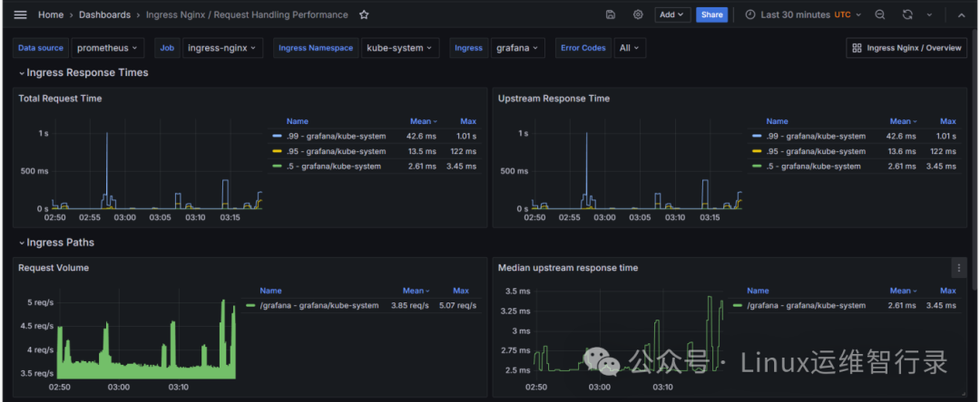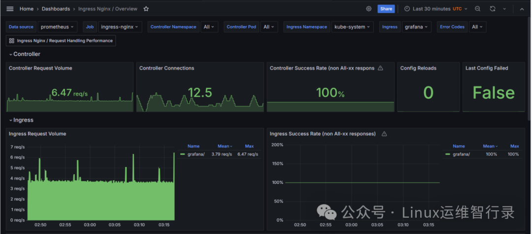 grafana上添加ingress_nginx_exporter面板地址:https://github.com/adinhodovic/ingress-nginx-mixin/tree/main/dashboards_out