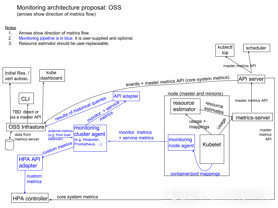 Metrics Server 从 Kubelet 收集资源指标,并通过Metrics API在 Kubernetes apiserver 中公开它们,以供Horizontal Pod Autoscaler和Vertical Pod Autoscaler 使用。Metrics API 也可以通过 访问kubectl top,从而更轻松地调试自动缩放管道。