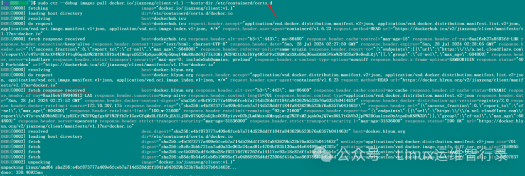 示例:ctr --debug image pull registry.k8s.io/pause:3.9 --hosts-dir etc/containerd/certs.d