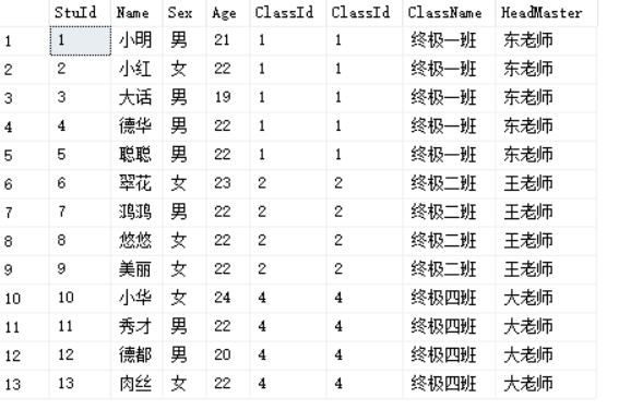 select * from Students s,Class c where s.ClassId=c.ClassId