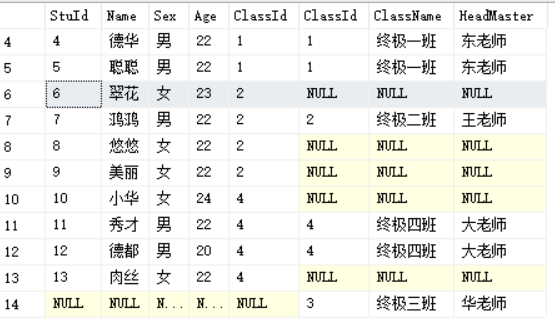 select * from Students s full join Class c on s.ClassId=c.ClassId