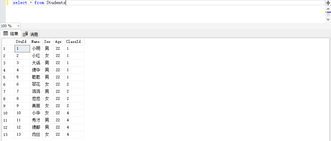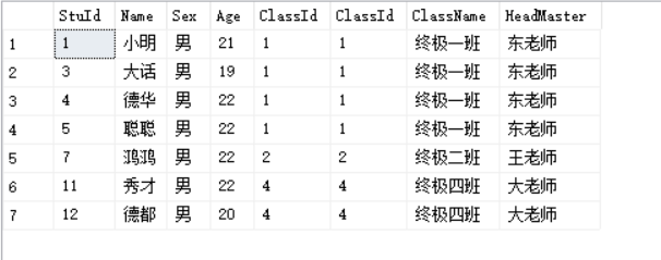 select * from Students s,Class c where s.ClassId=c.ClassId