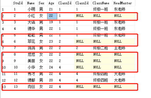 select * from Students s left join Class c on s.ClassId=c.ClassId