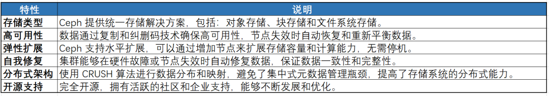 Ceph 是一个分布式存储系统,旨在提供高可用、高可靠和高扩展性的数据存储解决方案。它最初是由 Inktank 开发的,后被 Red Hat 收购。Ceph 具有以下几个关键特性:统一存储:Ceph 提供对象存储、块存储和文件系统存储等多种存储接口,能够满足不同类型的存储需求。对象存储(RADOS):适合海量数据存储,支持RESTful API。文件系统(CephFS):为虚拟化和云平台提供块设备支持。文件系统(CephFS):基于对象存储的分布式文件系统,提供POSIX兼容的文件系统接口。高可用性:Ceph通过数据复制和纠删码等技术,确保数据的可靠性和高可用性,自动在多个节点间复制数据,并在节点失效时自动恢复。弹性扩展:Ceph 可以通过增加新的节点来横向扩展,适应数据量的增长,无需停机或重新配置。自我修复:Ceph 在出现硬件故障或节点失效时,能够自动修复并重新平衡数据,确保存储池的一致性和完整性。分布式架构:Ceph 使用 CRUSH 算法来实现数据的分布和映射,避免了传统存储系统中的集中式元数据管理瓶颈。开源和社区支持:Ceph 是一个完全开源的项目,得到了全球社区的广泛支持。