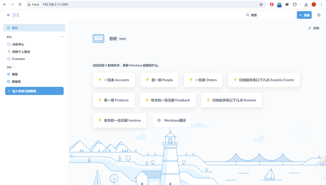 version: '3'services:metabase:image: metabase/metabasecontainer_name: metabaseports:- "3000:3000"environment:- MB_DB_FILE=/metabase-data/metabase.dbvolumes:- metabase-data:/metabase-datavolumes:metabase-data: