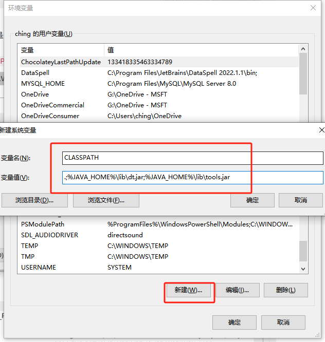 变量名:CLASSPATH变量值:.;%JAVA_HOME%\lib\dt.jar;%JAVA_HOME%\lib\tools.jar