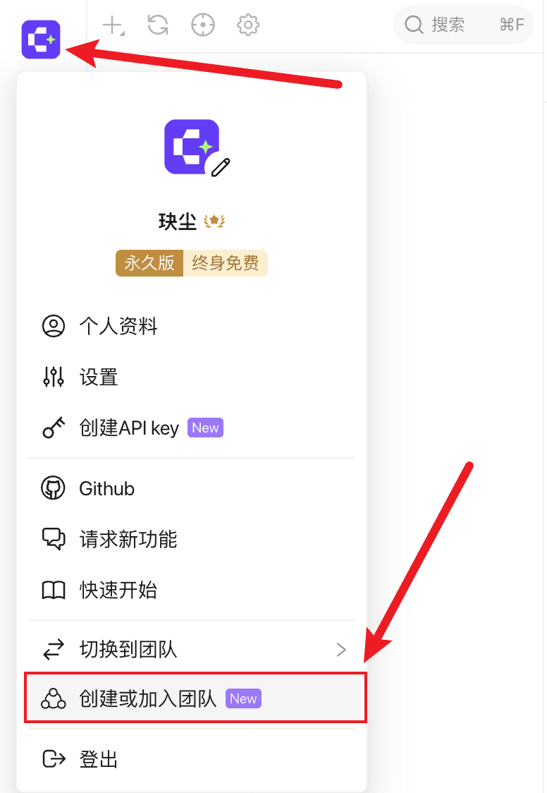 点击左上角头像创建或加入团队