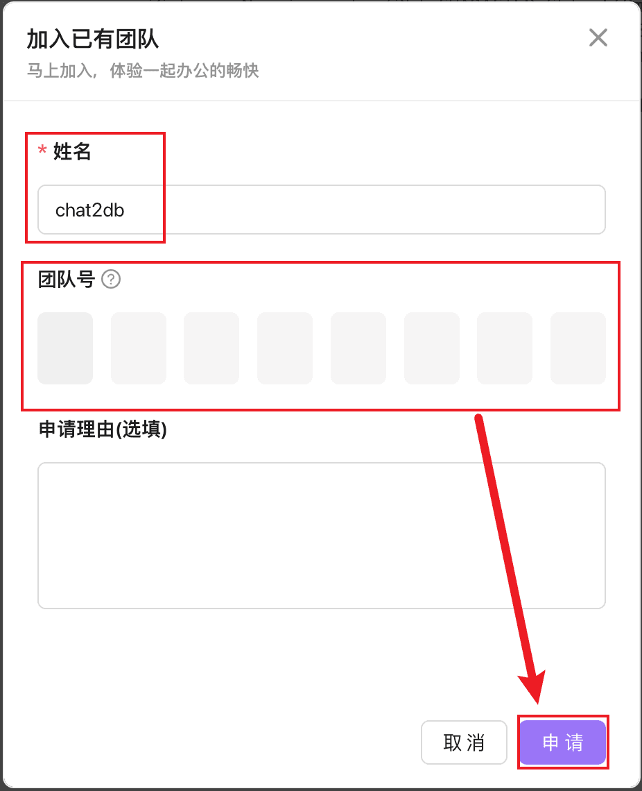 按钮申请加入团队。