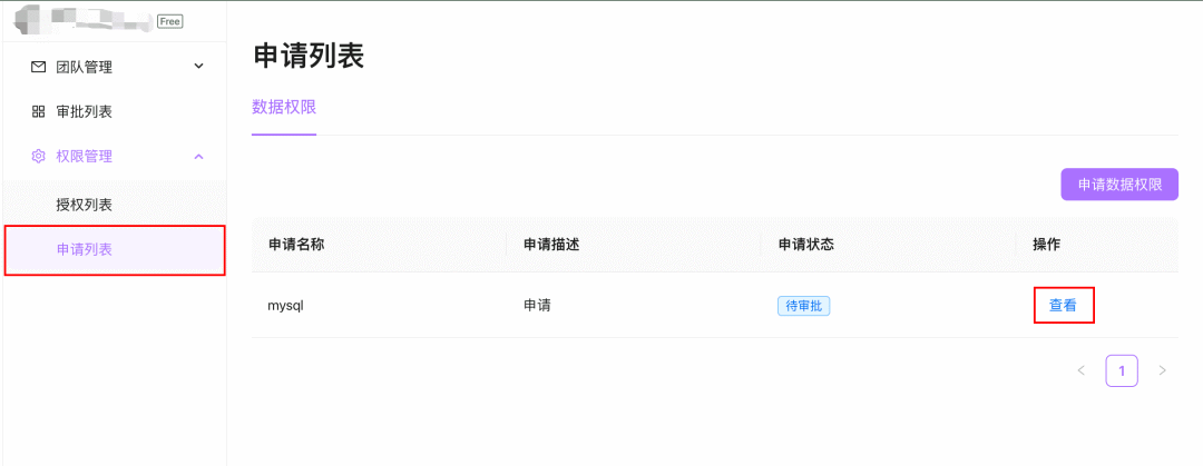 申请列表用于查看和处理团队成员提出的权限申请。用户可以在此进行以下操作: