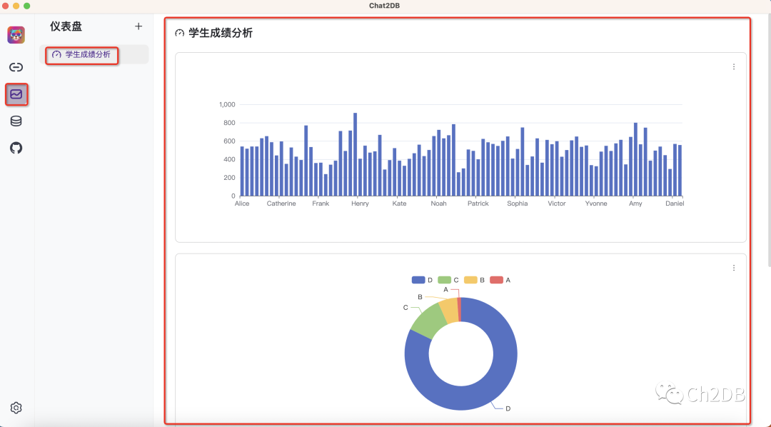 如图所示,Chat2DB已经连接到示例数据库,可以直接使用。2、3代表数据库schema点击可以切换database。