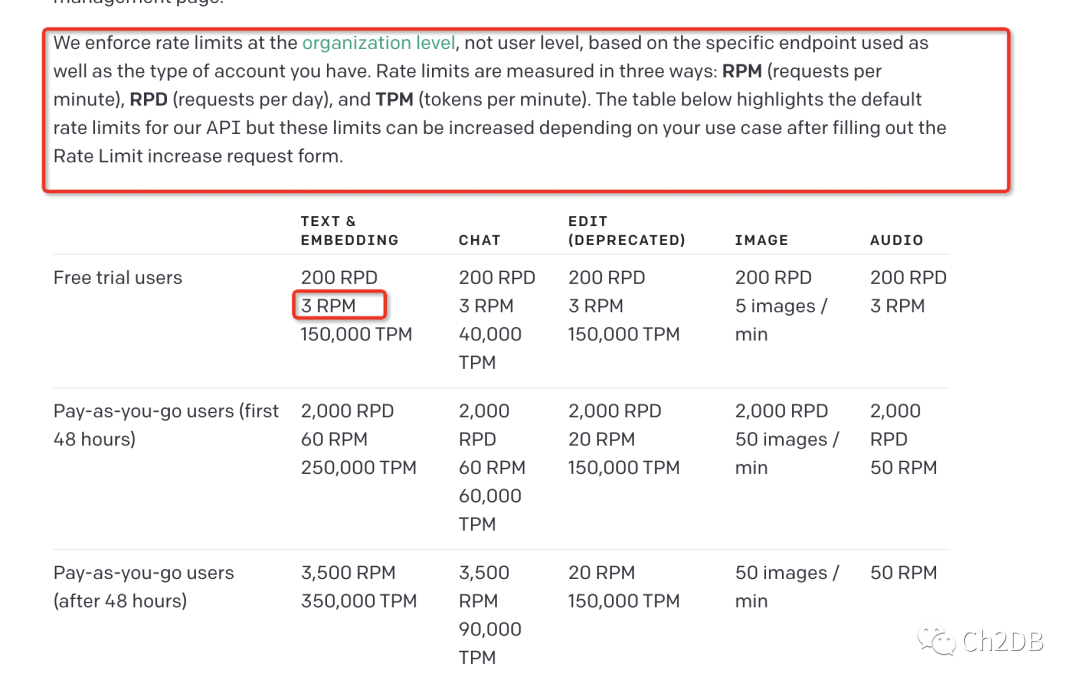 Open AI官方限制文档:https://platform.openai.com/docs/guides/rate-limits/overview