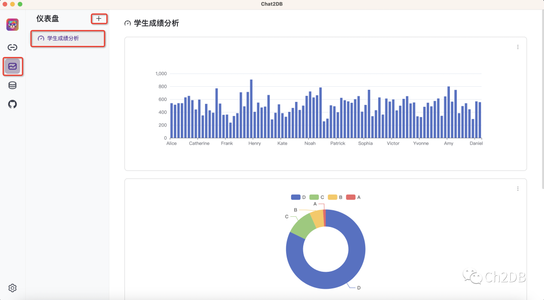 点击左侧仪表盘按钮,可以查看示例报表功能