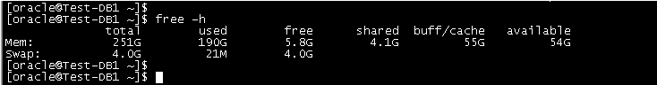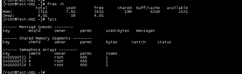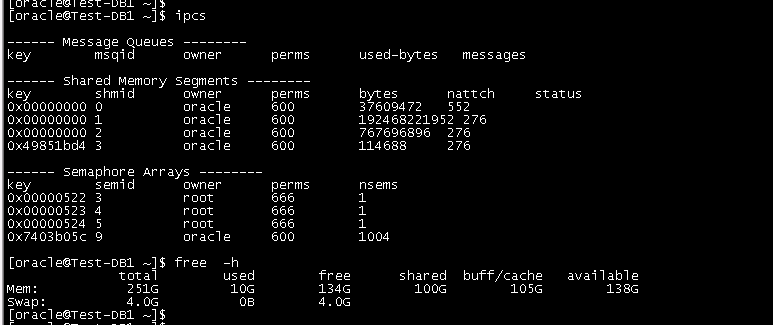 oracle 19c 测试库在使用中内存总是耗尽,做如下一些排查free -h查看总内存256GB,剩余只有5.8GB,IPCS查看oracle使用了192GB的共享内存,