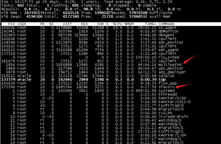 停掉oracle后执行top也看不出有什么进程占用内存过高的情况